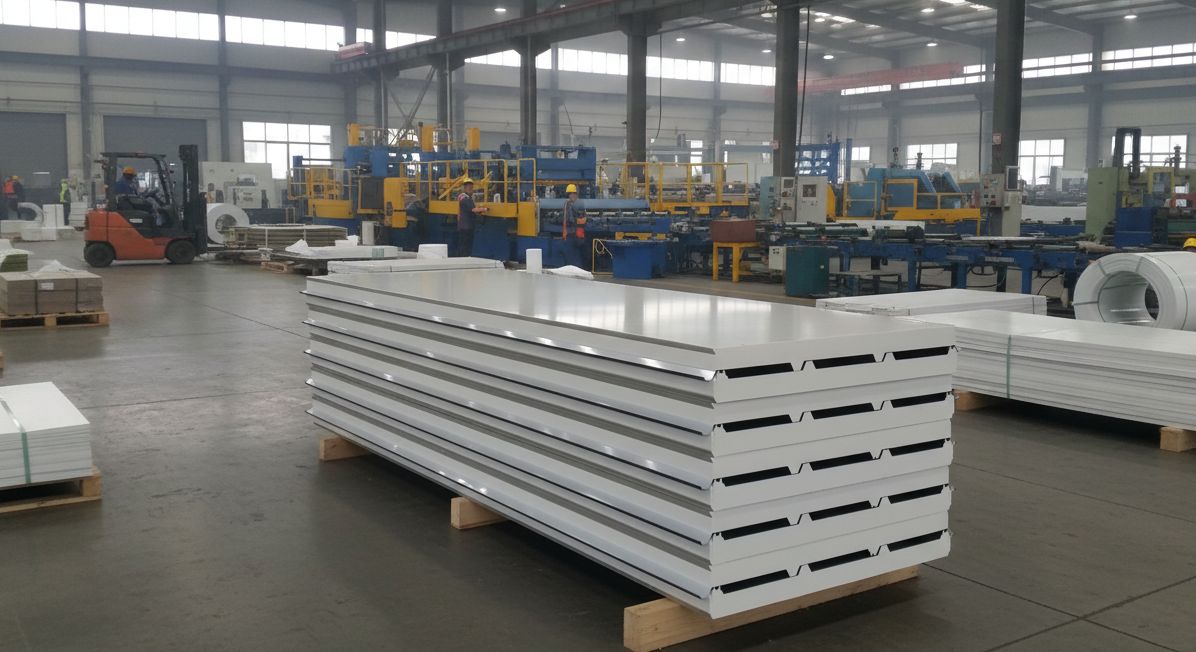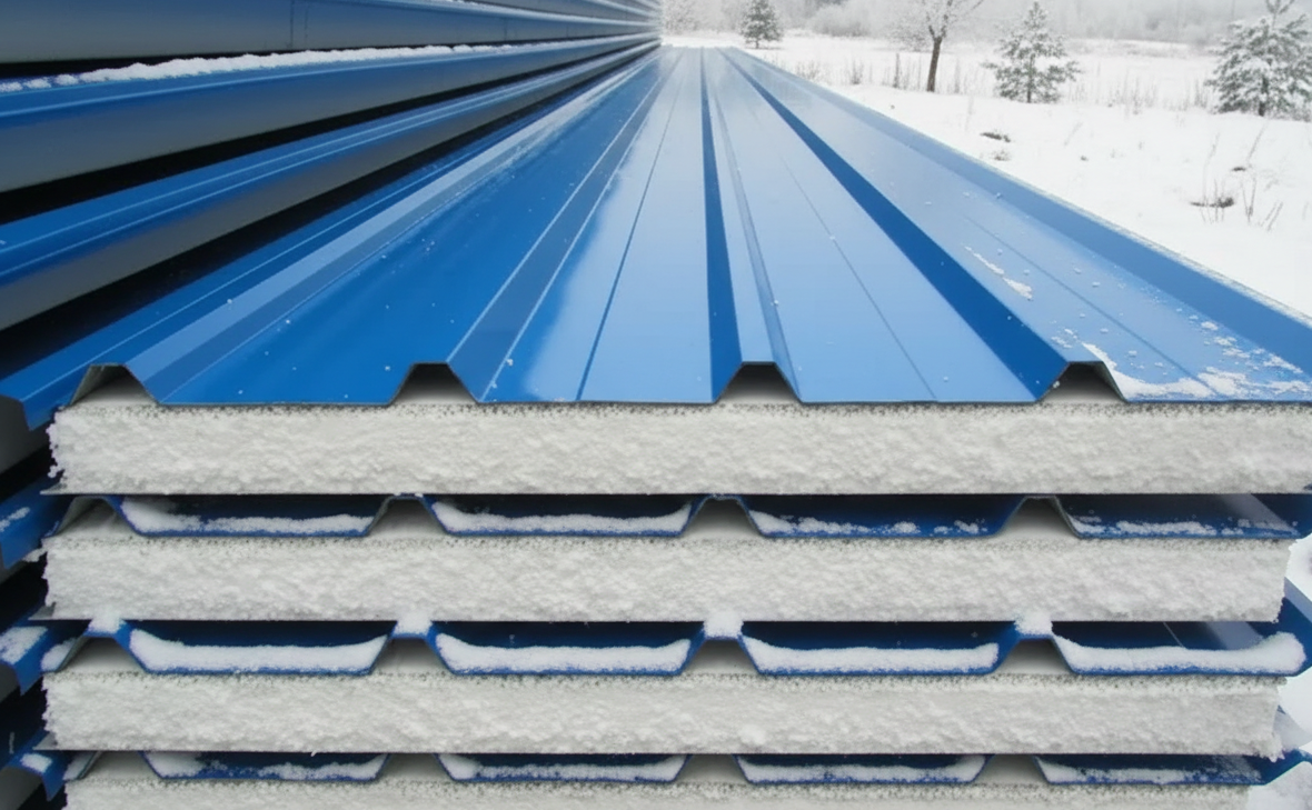 Холодные сэндвич-панели с пенополистиролом ППС или тонким слоем утеплителя позволяют сократить затраты на ограждающие конструкции — в среднем на 30–40%. Теплопроводность ППС λ=0,038–0,041 Вт/м·К достаточна для защиты от конденсата и ветра без переплаты за избыточное тепло.
